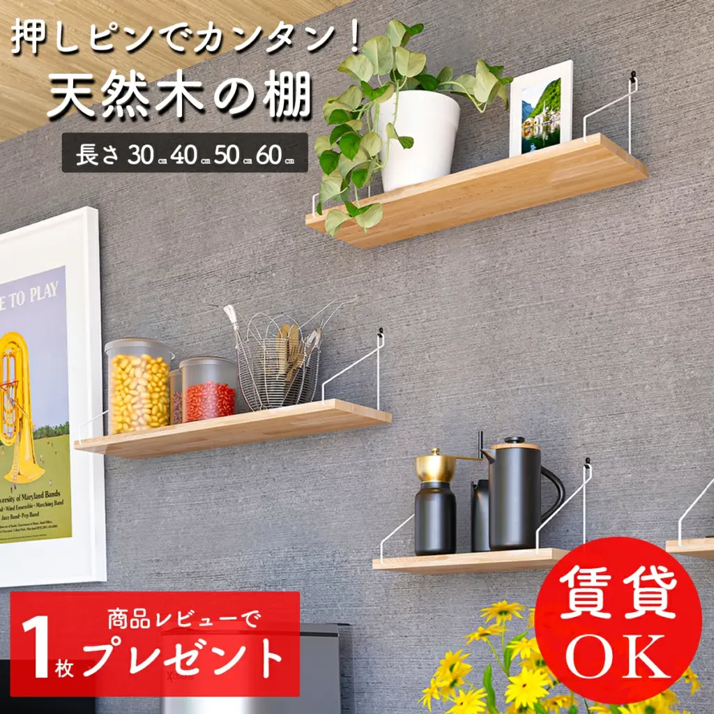 続いて、楽天市場やAmazonの人気商品から、ワンランク上の高品質ウォールシェルフを5つご紹介していきますね。