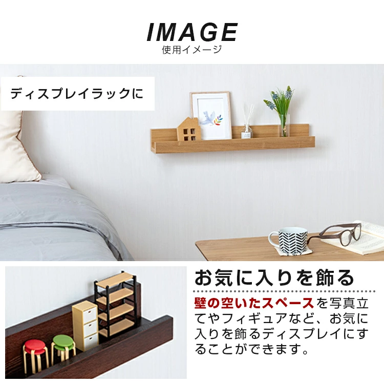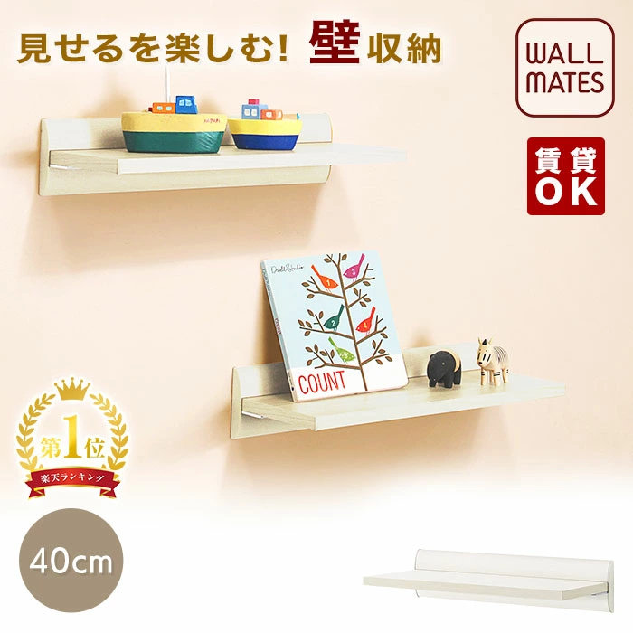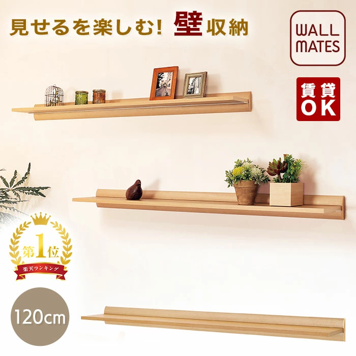 | WALL MATES ウォールシェルフ | ★4.68 | 幅40cm/80cm/120cmの3種類 | ・国内自社工場製 ・材質:アルミ+木質ボード ・色:アイボリー/ナチュラル ・安全荷重(例:40cm幅ピン5kg/ネジ10kg) | 楽天市場 | 8910円〜19,580円 | 無料 |
