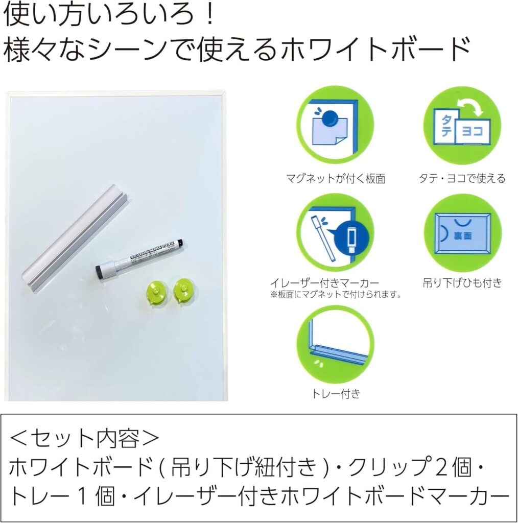 ネット販売では強力マグネット対応、マーカー・イレーサー付き、壁掛け金具、罫線入りなど多機能モデルが豊富で、使い勝手を細かく選べる。
