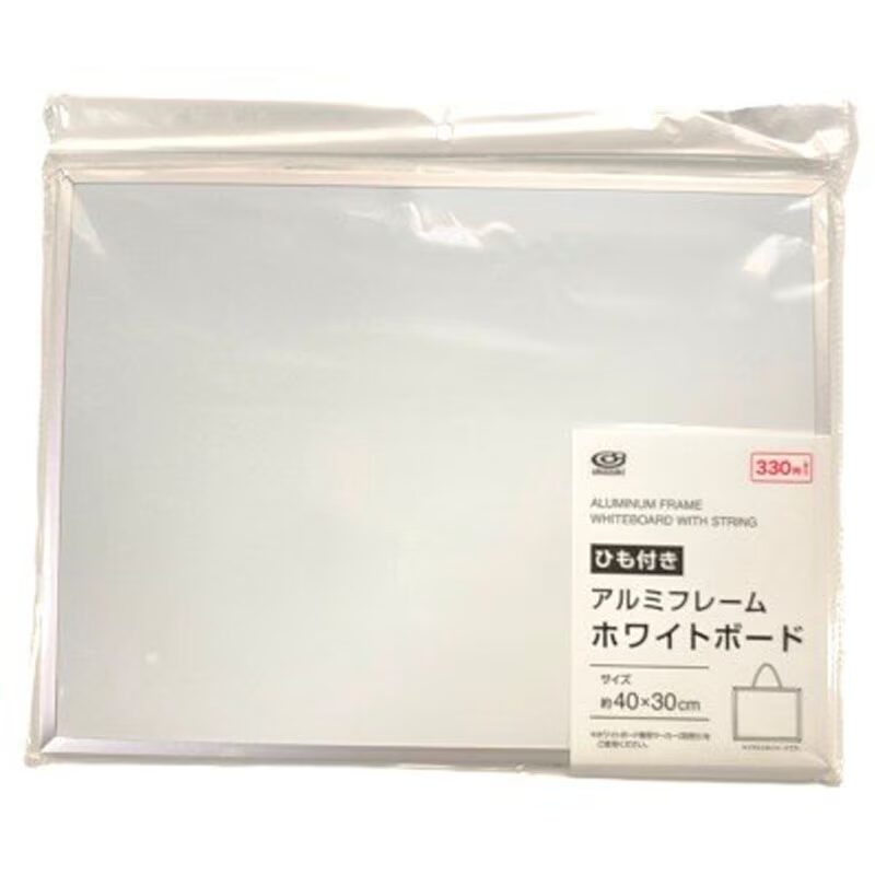 こちらはスタンダードなホワイトボードで、220円で販売されているものです。