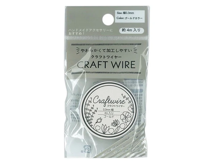| 商品の特徴 | 「クラフトワイヤー」約4m入り。程よい柔らかさで太さ3種類あり。スチール針金・カラー違いも展開。 | 「クラフト用コードワイヤー」太さ0.5mm・長さ4m。細めで扱いやすく、ロープ風タイプもあり。 | 「クラフトワイヤーゴールド」幅0.3mm×長さ4m。柔らかく加工しやすく、ゴールドとシルバーの2色展開。 |