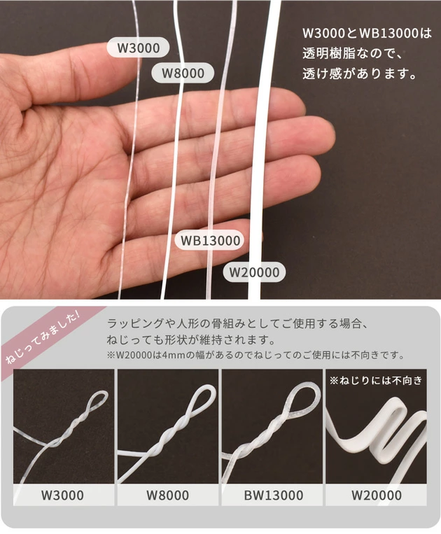 - 衣装やリボンの裾に仕込んで立体感を演出したい時にもおすすめ。