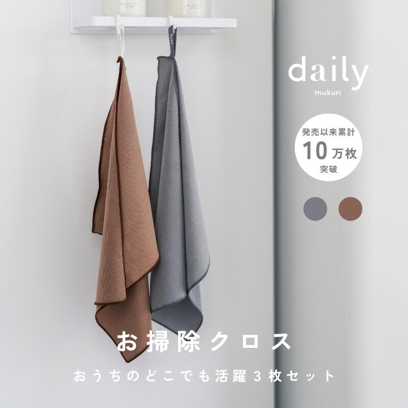 daily mukuri マルチクロス★4.73(口コミ486件)30×40cm(3枚セット)薄手のマイクロファイバーがホコリや微粒子を絡め取る。洗剤不要で汚れを落とせて環境にもやさしい。モップにも装着可能楽天市場 /¥1,870