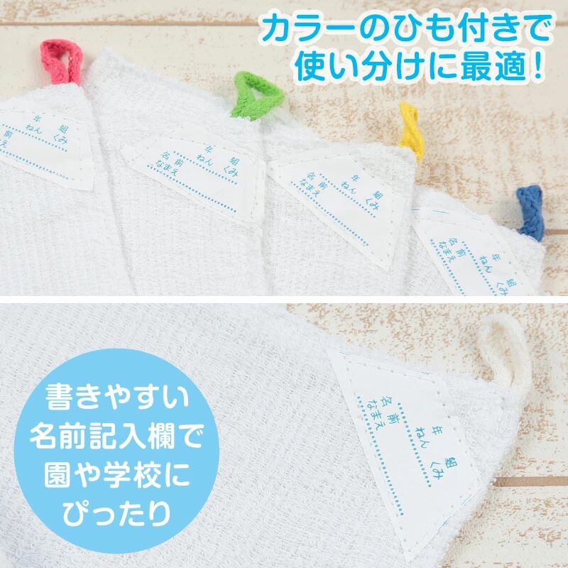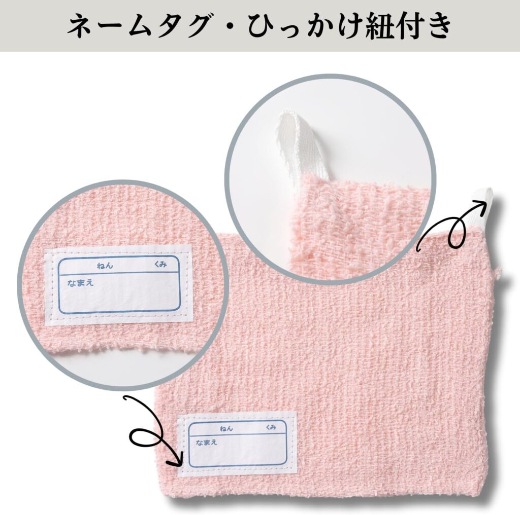 • 学校で使いやすい白地で、ねん・くみ・なまえの記入できる名札付き。
